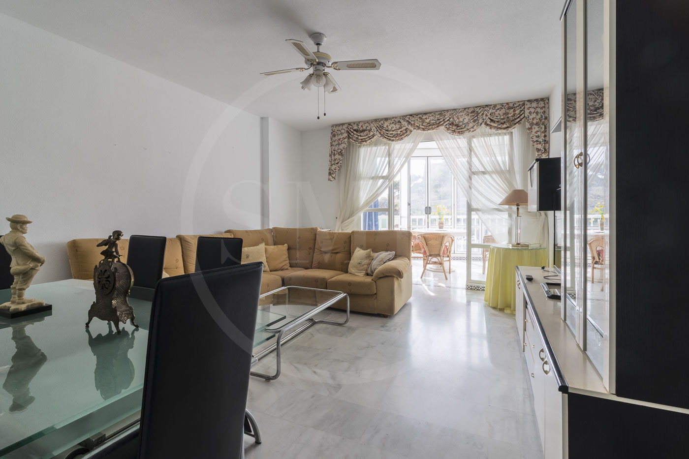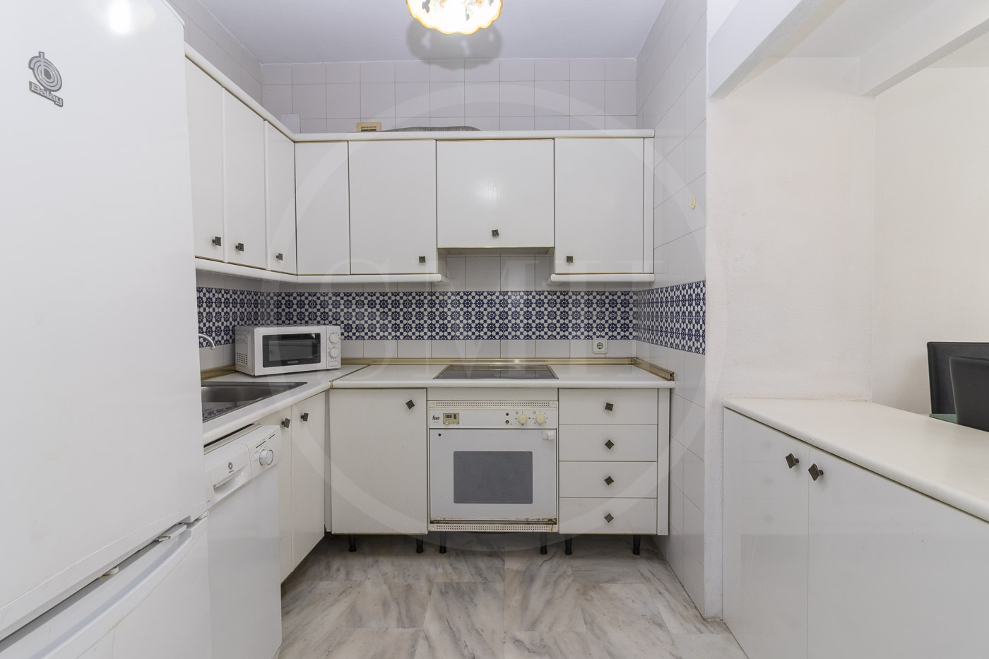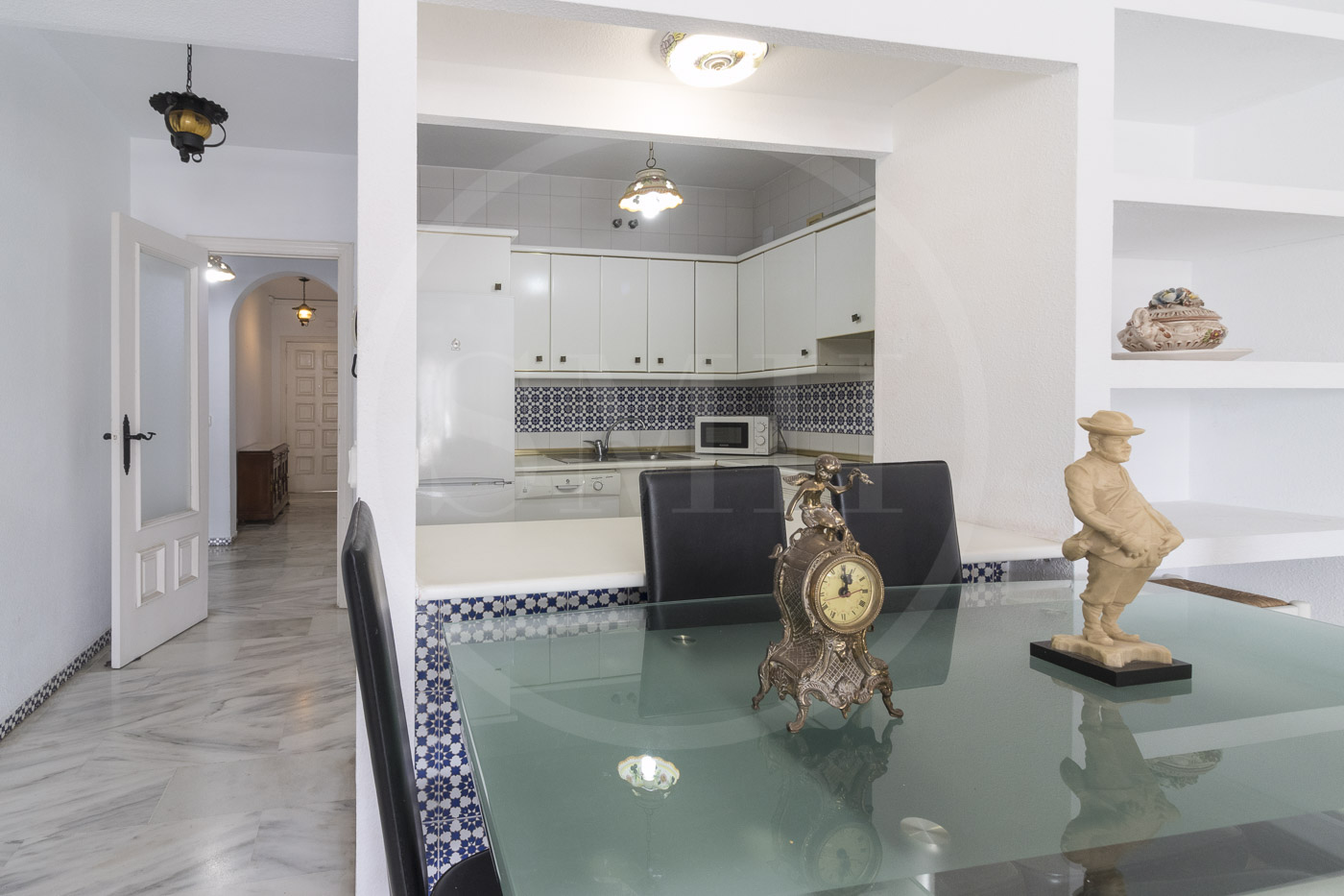 Apartment in Castillo Sohail, 2nd line to the beach, with 134 m² built, 3 bedrooms, 2 bathrooms, good condition, exterior, 3rd floor, 1 terrace(s), 18 m² of terrace, fitted kitchen, elevator, southwest orientation, 1989, green areas, communal pool, marble floor. Fabulous property in Fuengirola, second line to the beach, quiet residential area and surrounded by all facilities, shops and services. (parks and leisure areas, cafes, Miramar shopping center, public transport, health center,… ).