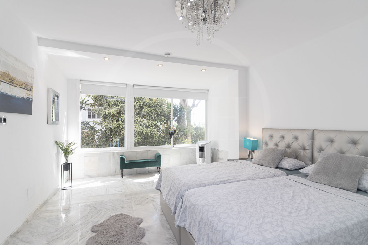 Located next to the Río Real golf course, a few minutes walk from the beach and 5 minutes by car from the center of Marbella. Torre Real, located in Marbella in the Río Real – Los Monteros golf area, is a gated community with security and surveillance cameras. It offers a large garden of more than 40,000m2, two swimming pools, the largest being salt chlorinated, tennis and paddle tennis, as well as a barbecue area. Trocadero Arena is the closest beach bar open all year round. There is a restaurant and cafeteria at the Río Real golf club.