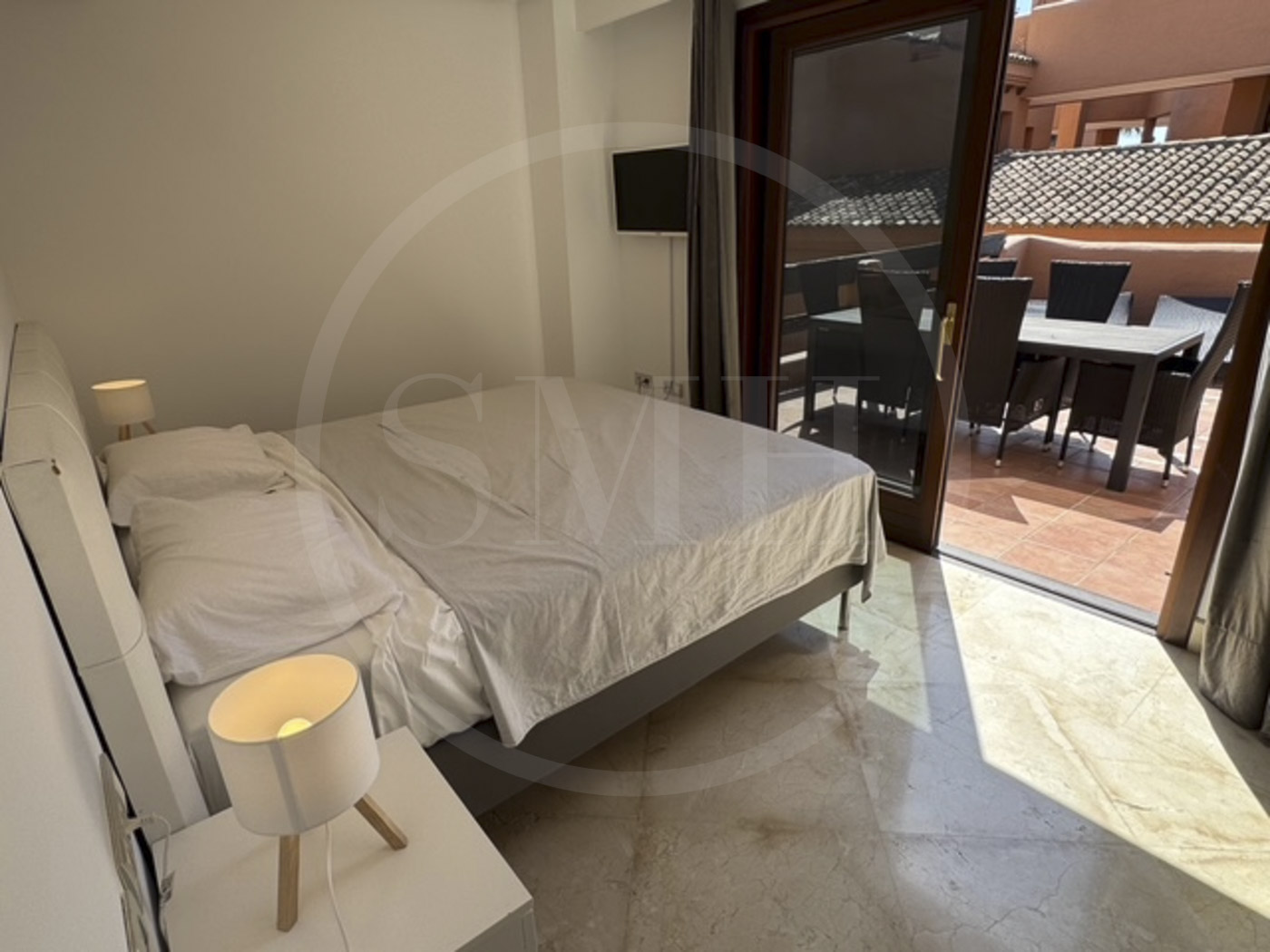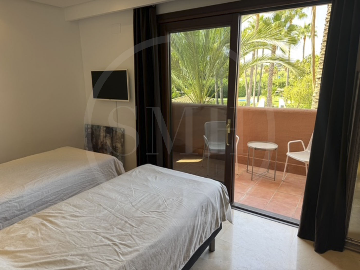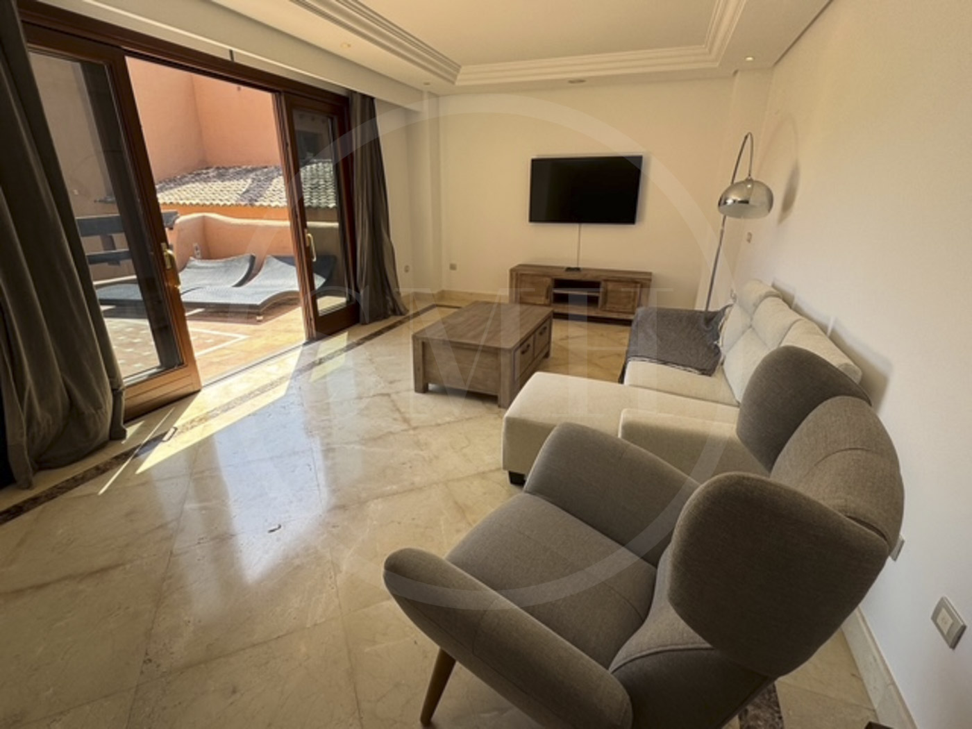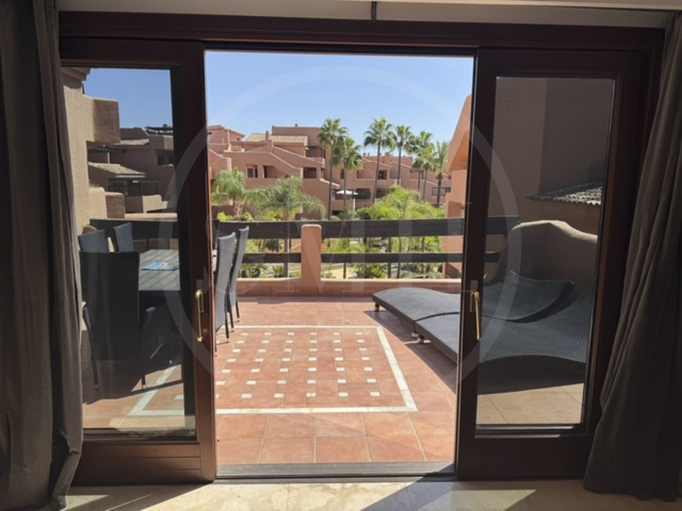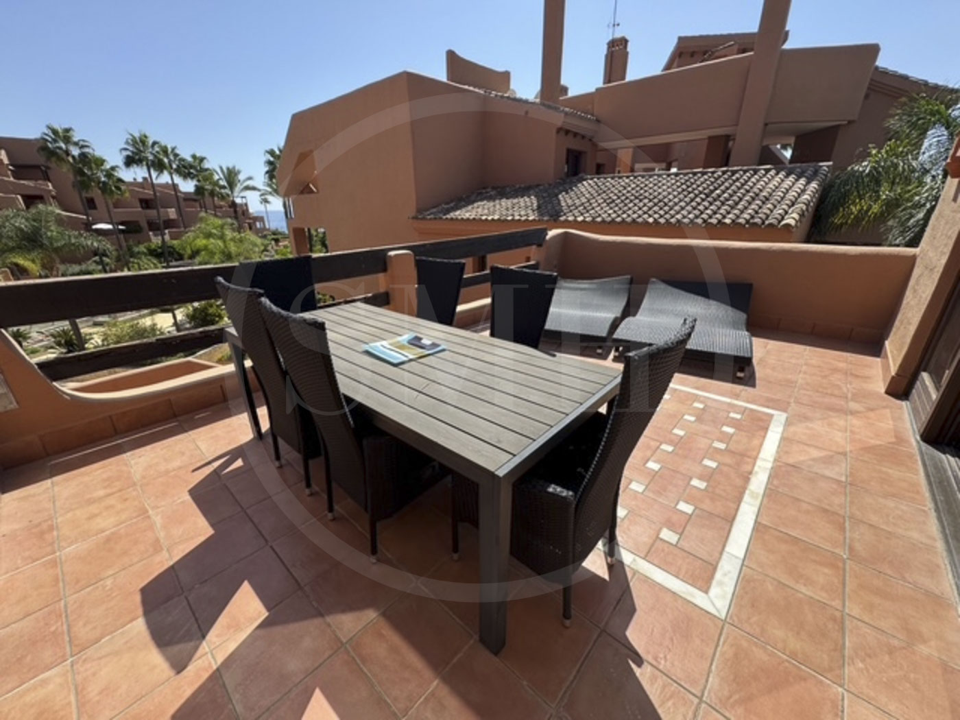 Located in the sought-after beachfront community on Estepona’s prestigious New Golden Mile, this elegant 2-bedroom, 2-bathroom apartment offers a luxurious coastal lifestyle with direct beach access and top-tier amenities. Walking distance to the vibrant Estepona town center with its bars, restaurants and shops. Boasting a south-east orientation, the property enjoys abundant natural light throughout the day and offers partial sea views from its spacious 20m² private terrace – perfect for al fresco dining or relaxing in the Mediterranean breeze. There is a garage space and store room included.