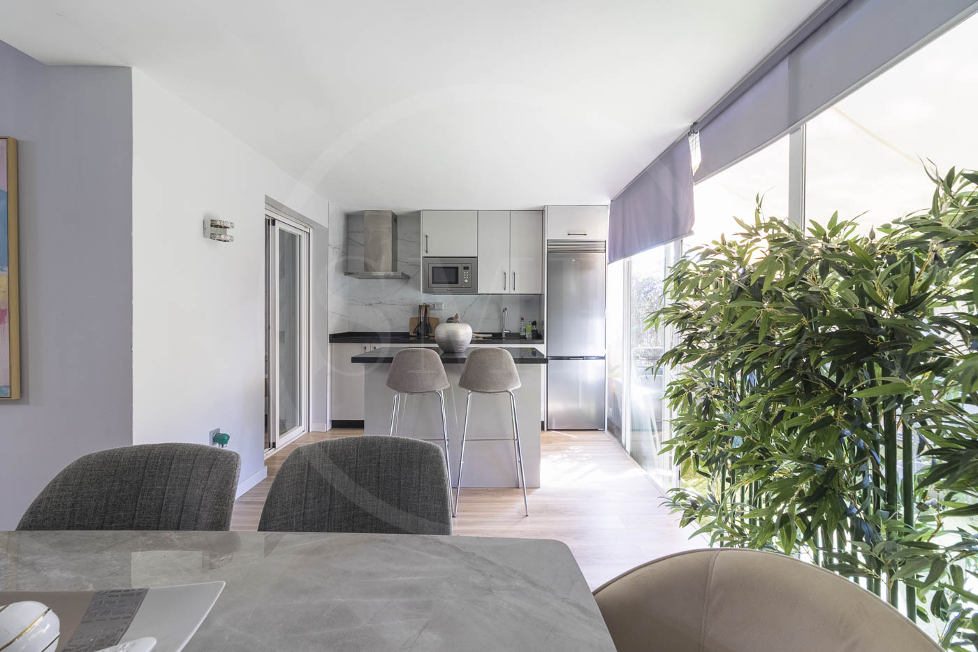 The property has a total of 135 m² (70 m² interior + 65 m² of private garden), completely renovated less than 2 years ago, with an open-plan kitchen and a living-dining room with direct access to the garden.