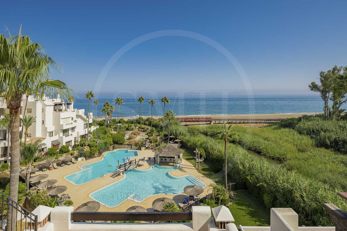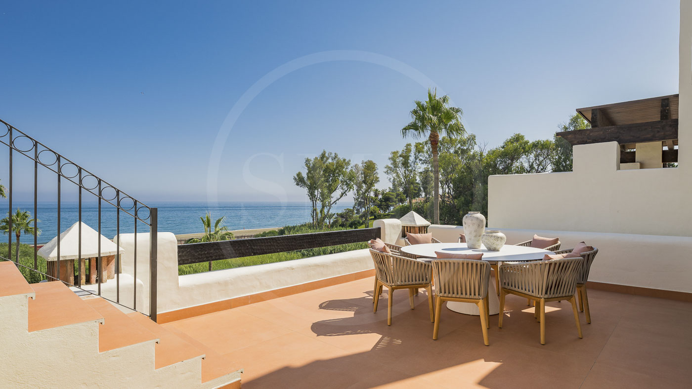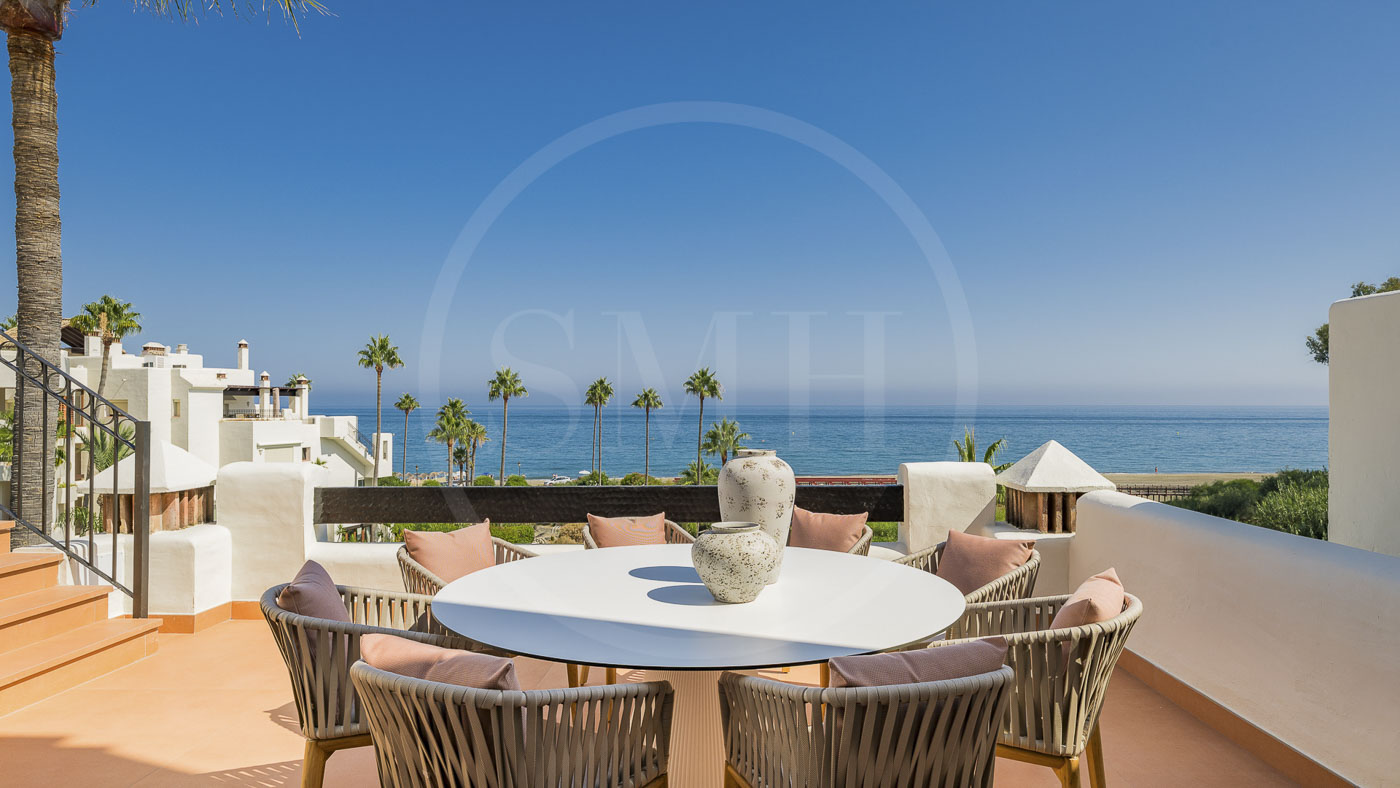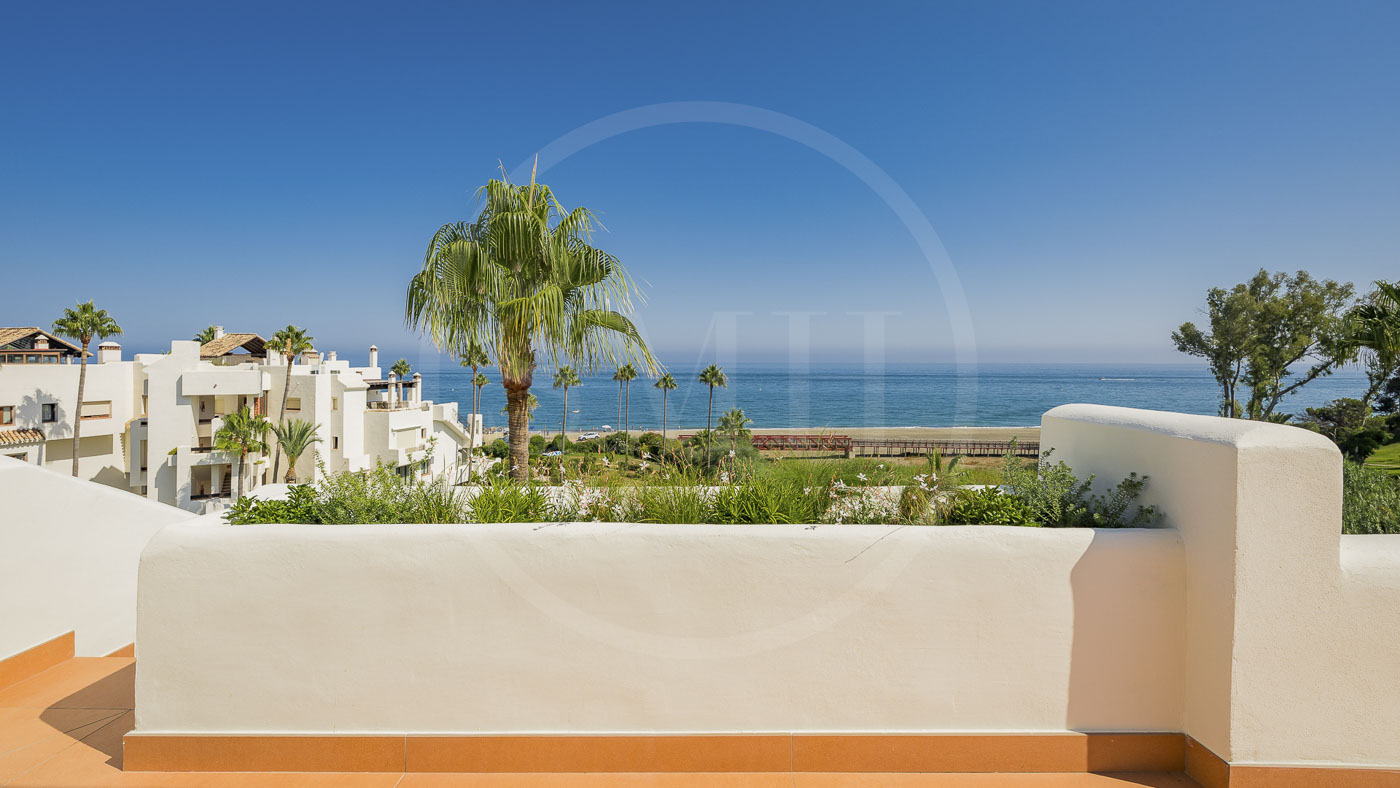 Bahía del Velerín is a luxurious community between Marbella and Estepona. It has a fantastic pool area with a snack bar, tropical gardens and 24/7 security. The community is located at one of the best beaches in the area. The apartment comes with an underground parking space and an additional storage room in the basement.