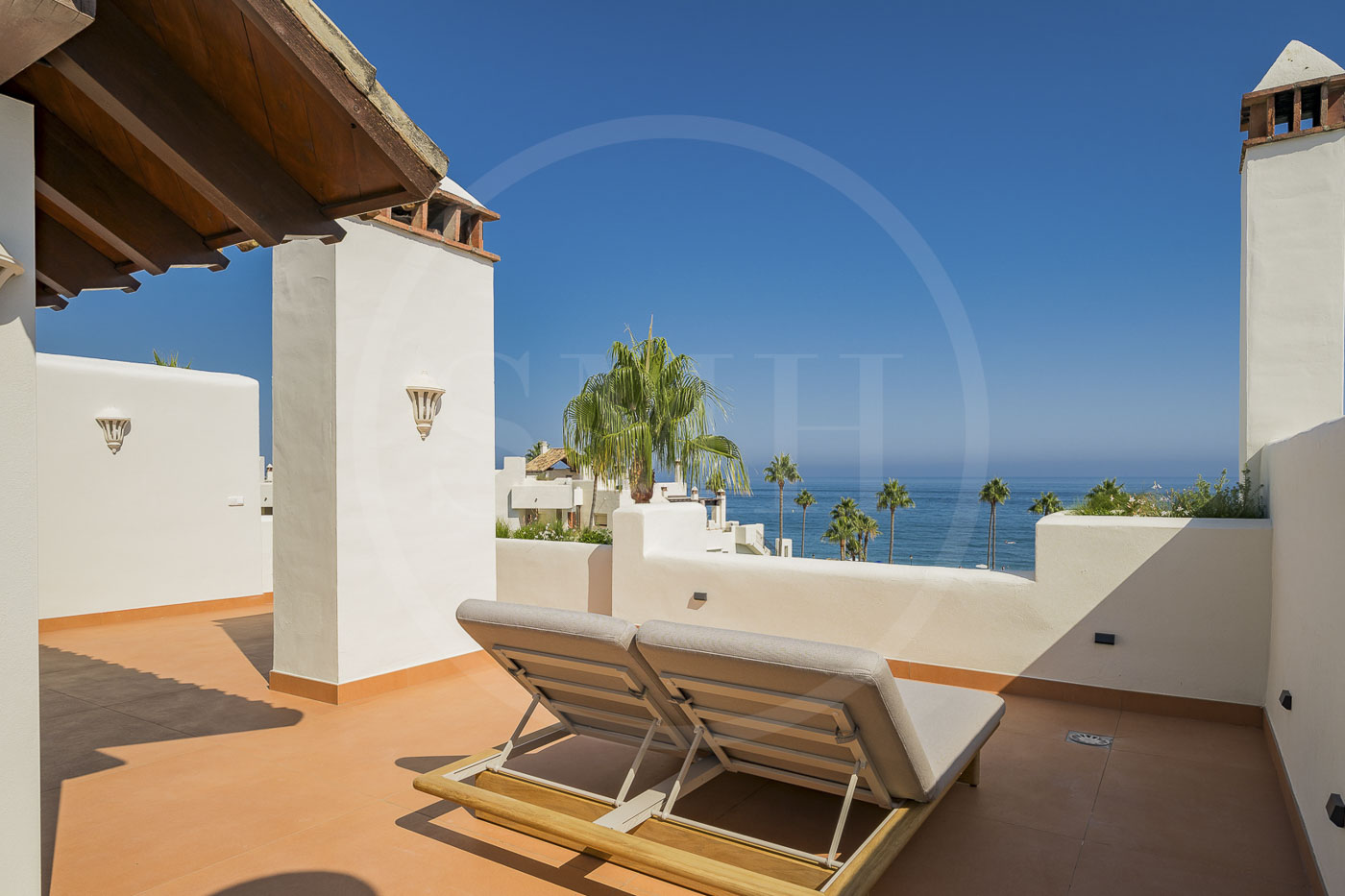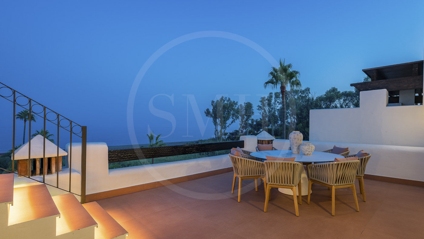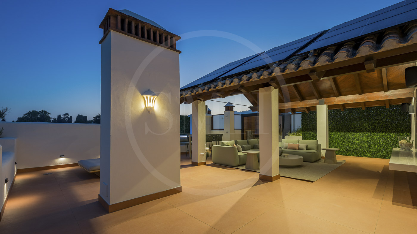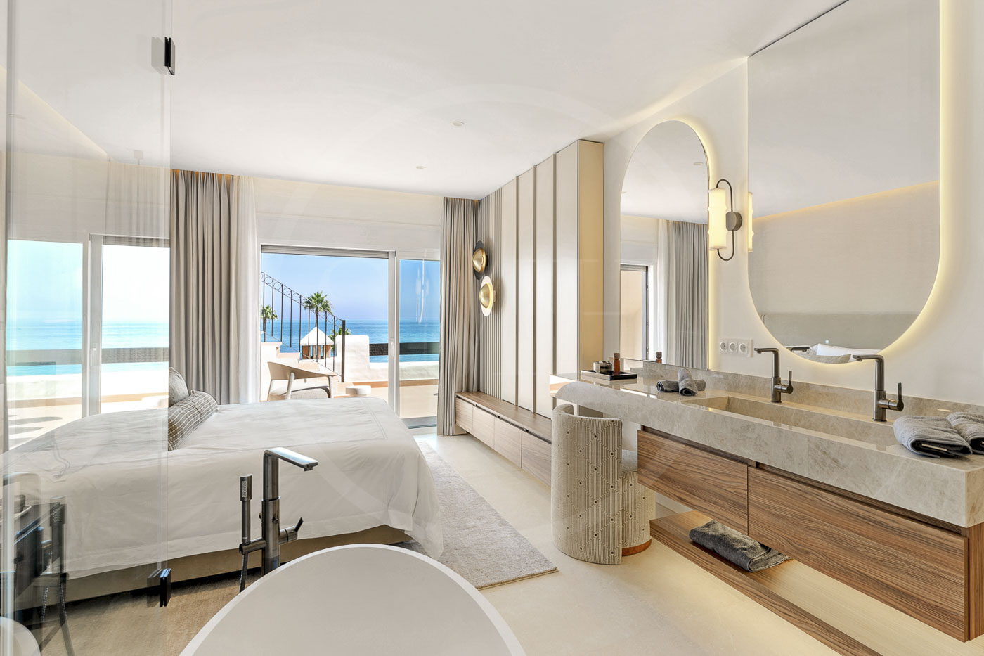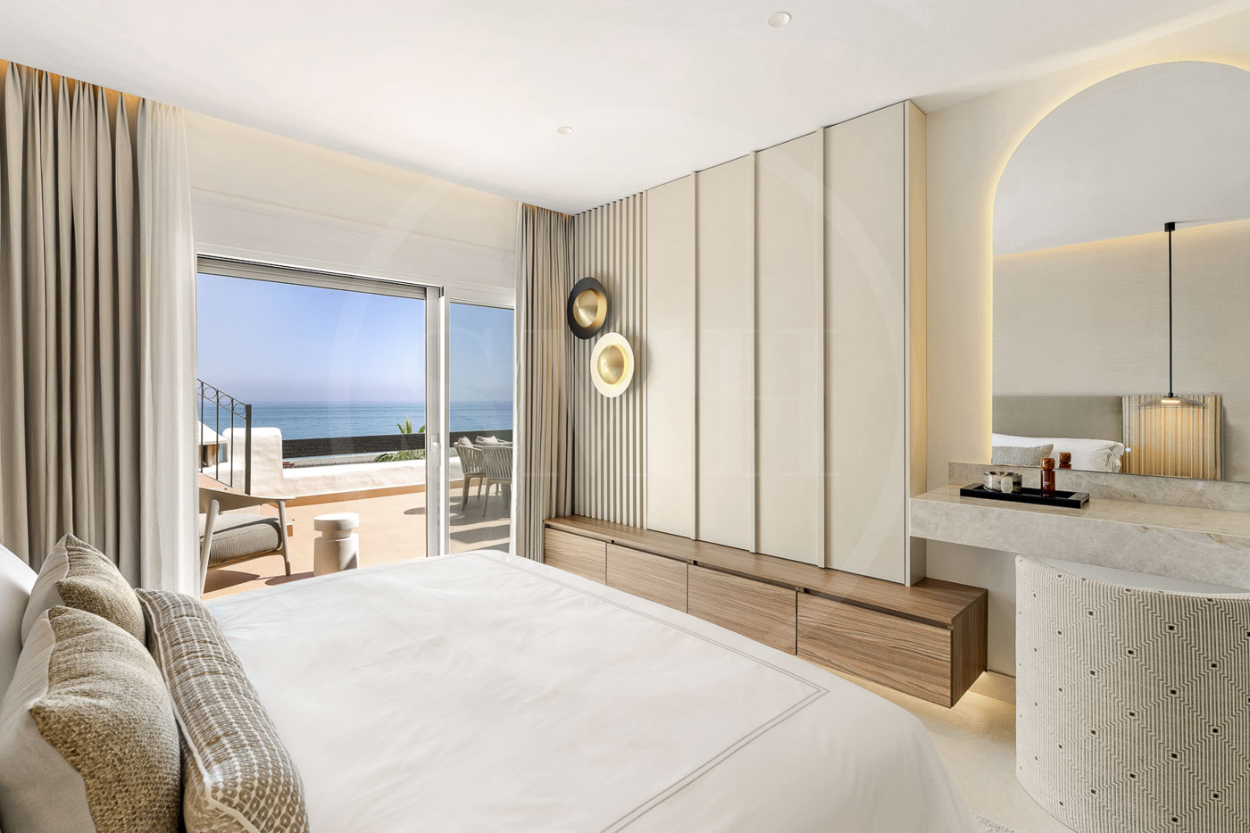 Every room has been thoughtfully furnished by our interior designer, showcasing luxurious details like custom wardrobes, walk-in showers, a freestanding bathtub, a Bang & Olufsen sound system, and a sleek modern fireplace. The expansive rooftop terrace offers breathtaking, unobstructed views of the Mediterranean and includes dedicated dining, wellness, and relaxation areas.