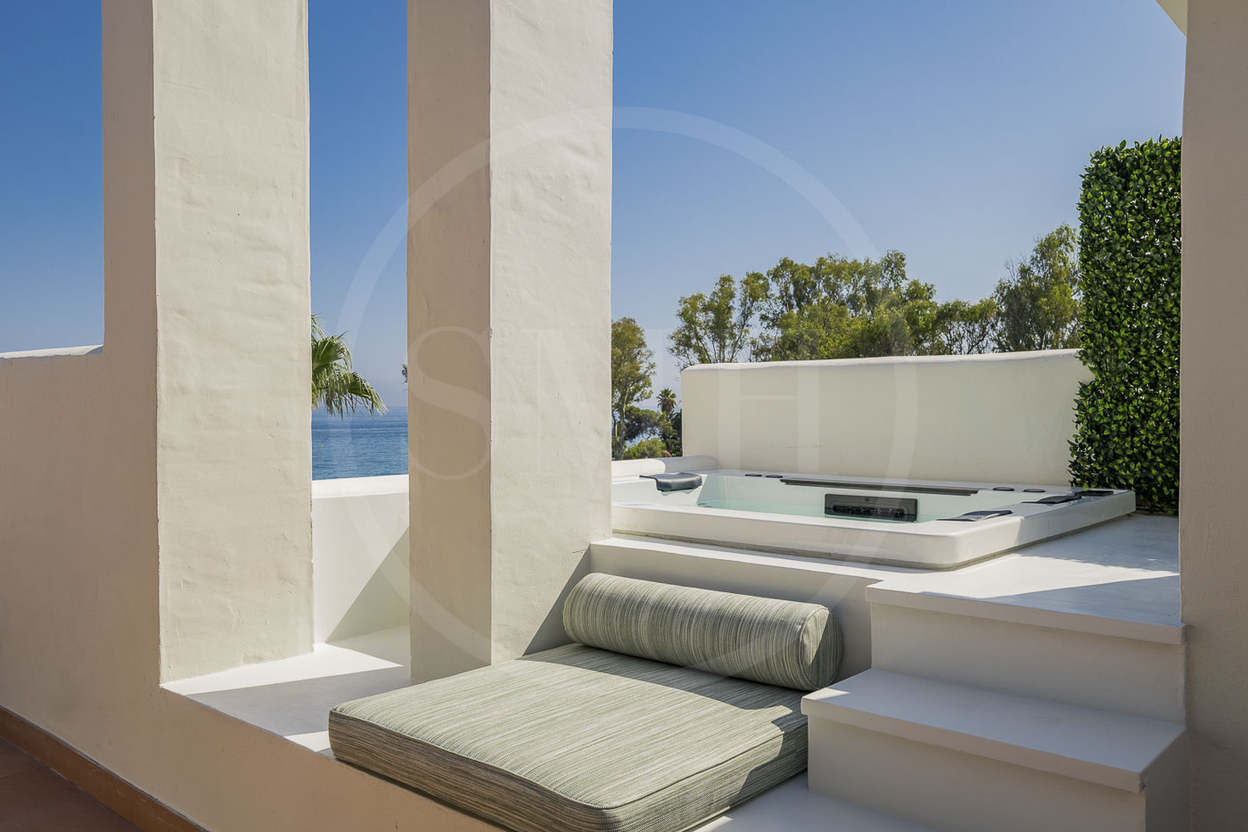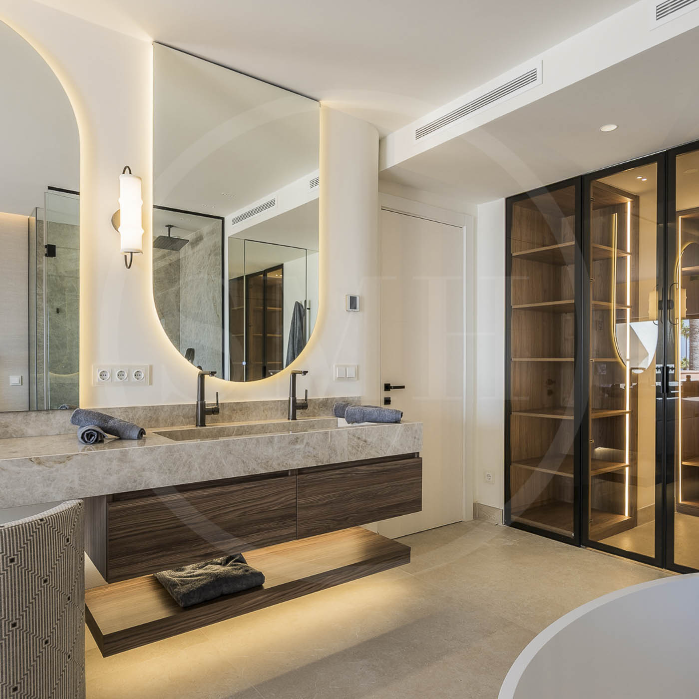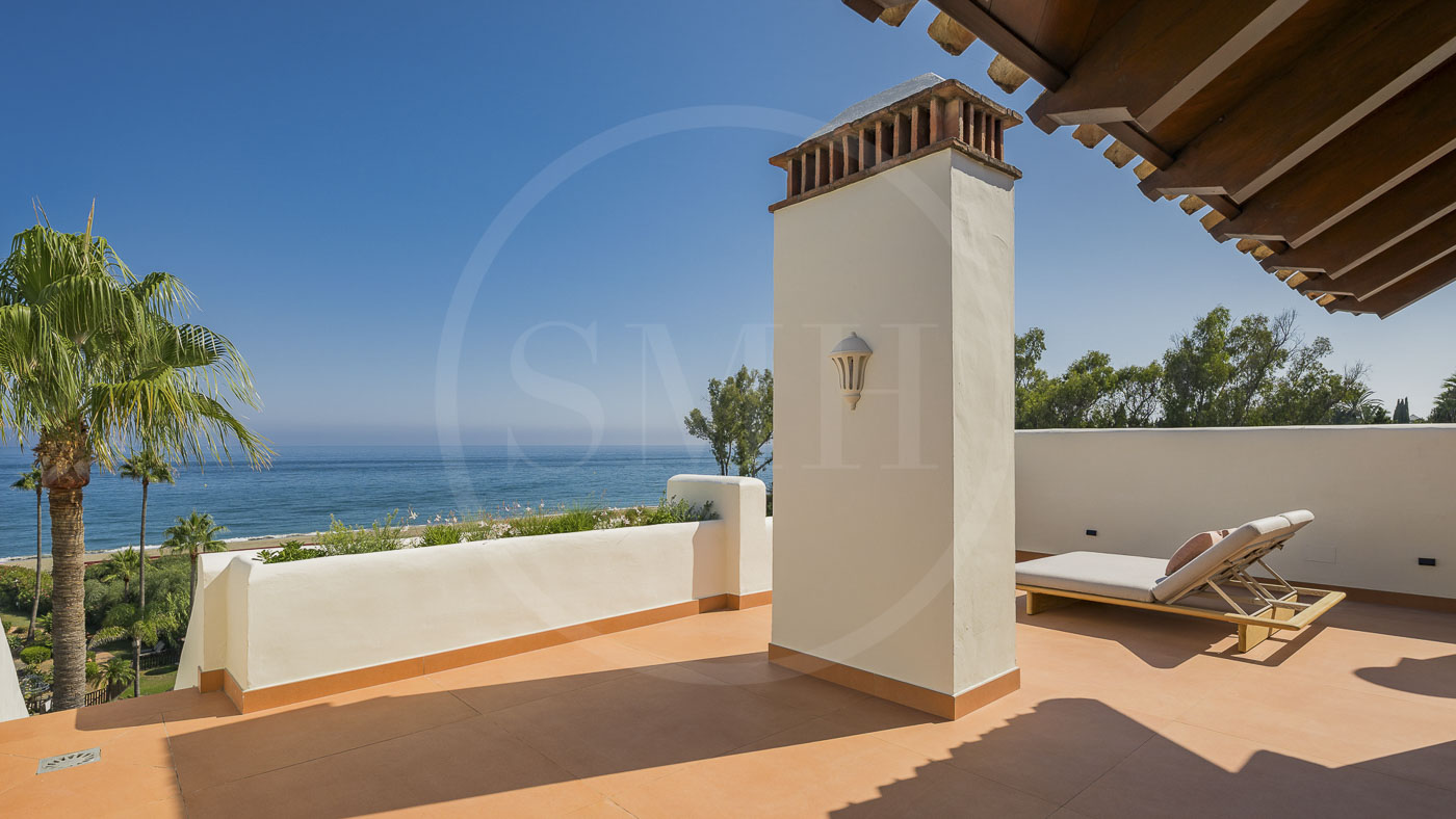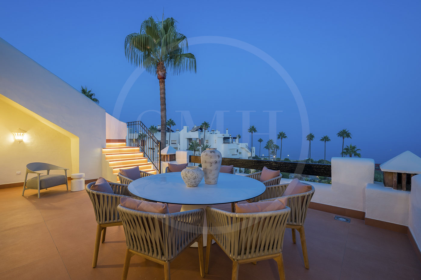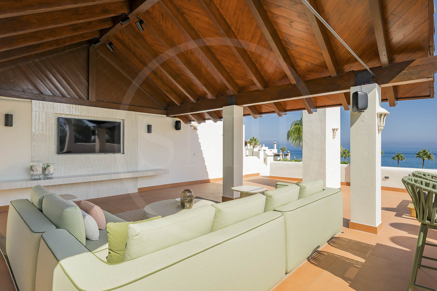 Every room has been thoughtfully furnished by our interior designer, showcasing luxurious details like custom wardrobes, walk-in showers, a freestanding bathtub, a Bang & Olufsen sound system, and a sleek modern fireplace. The expansive rooftop terrace offers breathtaking, unobstructed views of the Mediterranean and includes dedicated dining, wellness, and relaxation areas.