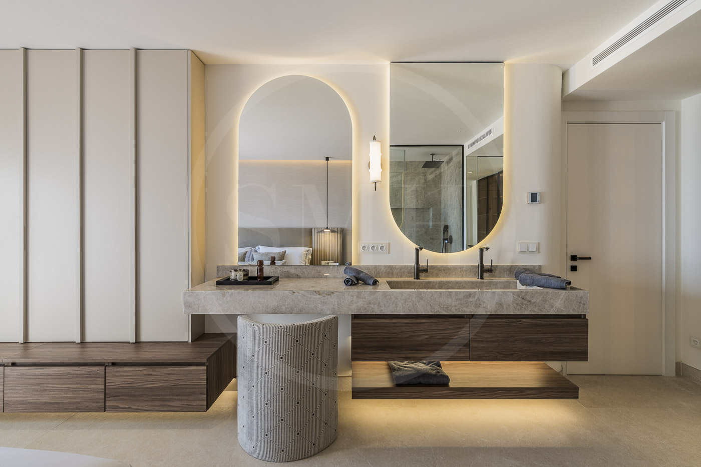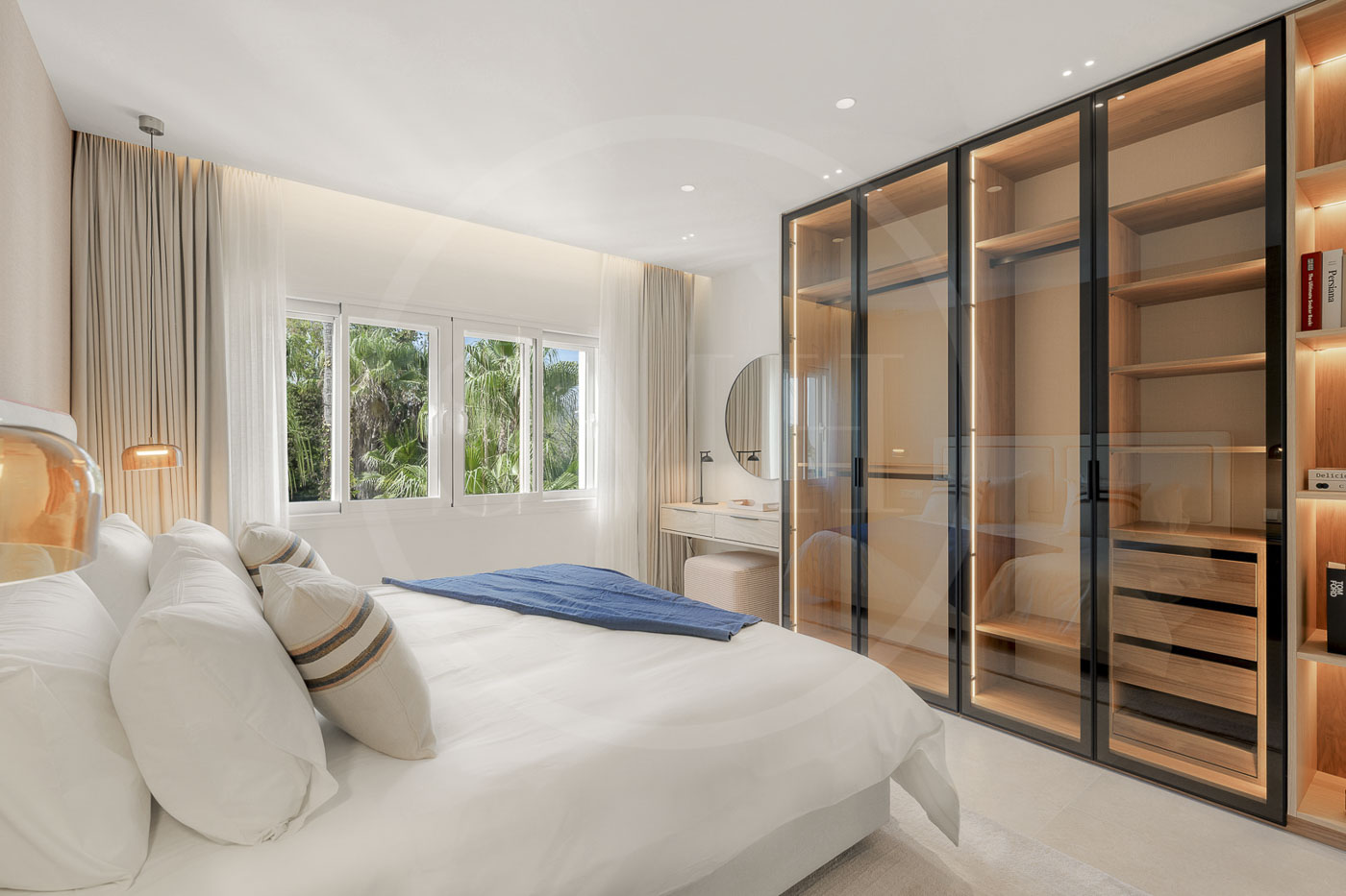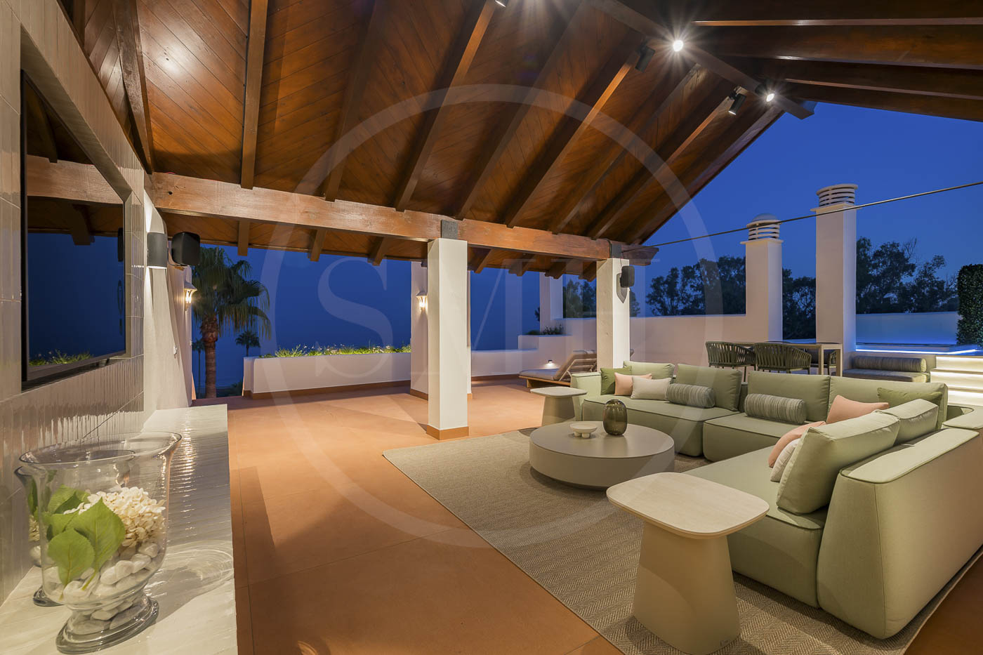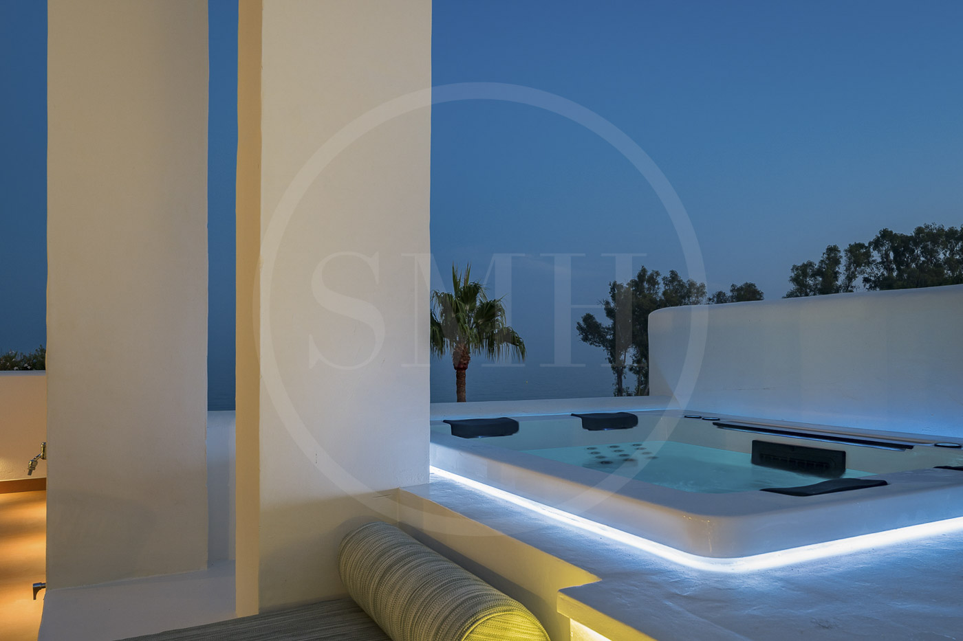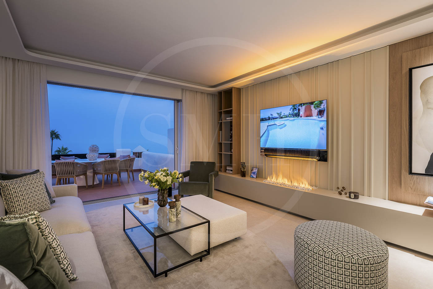 Every room has been thoughtfully furnished by our interior designer, showcasing luxurious details like custom wardrobes, walk-in showers, a freestanding bathtub, a Bang & Olufsen sound system, and a sleek modern fireplace. The expansive rooftop terrace offers breathtaking, unobstructed views of the Mediterranean and includes dedicated dining, wellness, and relaxation areas.